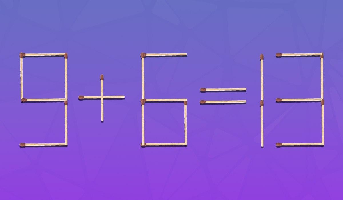 Pusslet nedan är utformat för personer med exceptionell koncentrationsförmåga. På bilden ser du likheten ”9+6=13”, vilket är matematiskt fel. Du måste rätta till det.
