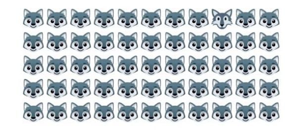 Det finns femtiofem bilder av en varg, men bara en av dem skiljer sig markant från de andra. Det tar 5 sekunder att hitta främlingen i flocken.