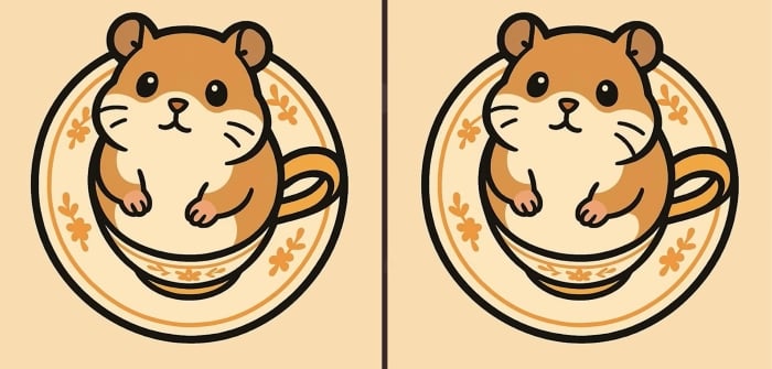 Så, är du redo för nästa utmaning? Ta en närmare titt på de två bilderna av en hamster som sitter i en kopp. De kan se identiska ut vid första anblicken, men det finns 3 små skillnader. Tror du att du kan hitta dem alla på 51 sekunder? Prova och testa din synskärpa!