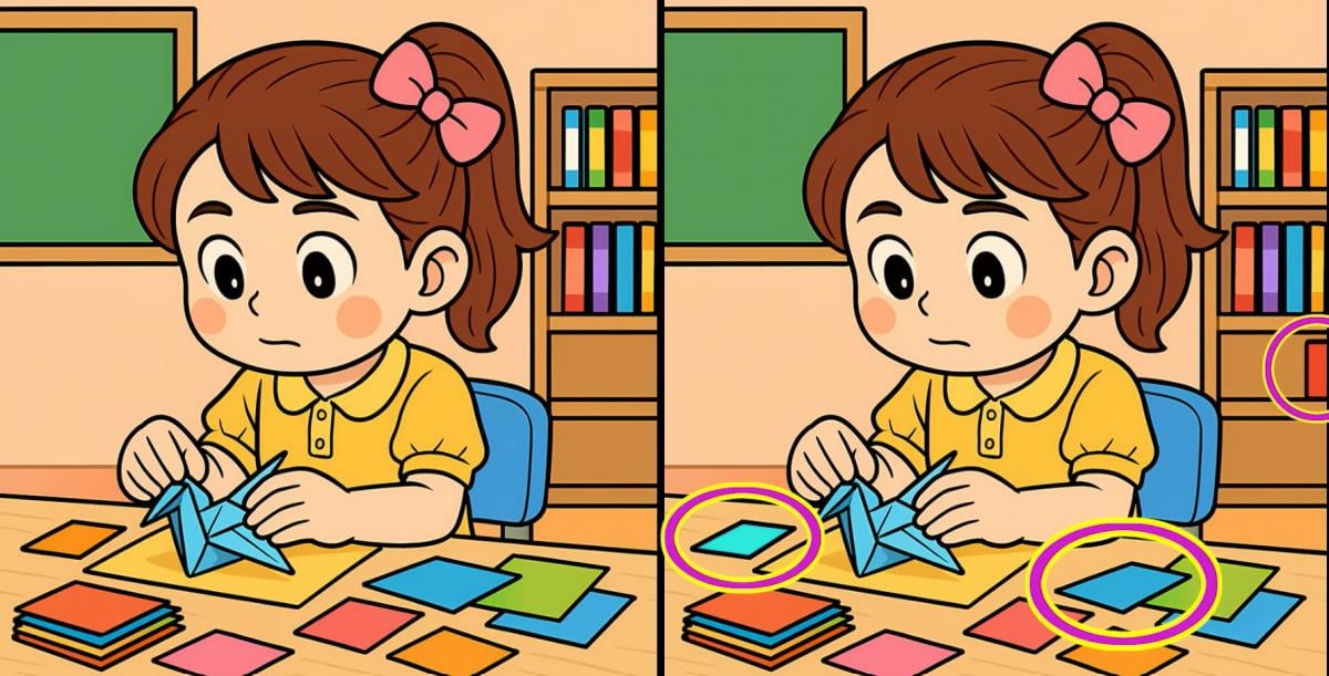 Så, är du redo för nästa utmaning? Ta en närmare titt på två bilder av en flicka som gör pappersfåglar. De ser kanske likadana ut vid första anblicken, men det finns 3 små skillnader. Tror du att du kan hitta dem alla på 19 sekunder? Prova och testa din synskärpa!